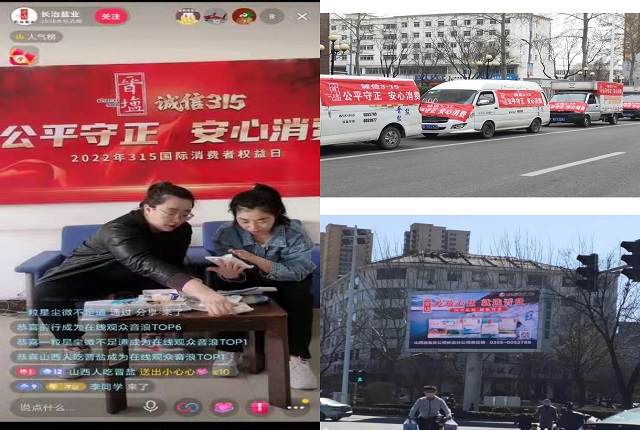 多地分公司利用电视广播专题活动、云直播、电子屏幕、和配送车悬挂横幅等形式进行宣传。活动中,工作人员向群众发放宣传资料近两千余份,宣传了《食盐专营办法》和国家盐业相关政策、《消费者权益保护法》、《山西省消费者权益保护条例》等法律法规,使广大消费者更多的了解“晋盐”产品,提高消费者对晋盐产品的信赖度,将“少吃盐、吃好盐、放心盐、选晋盐”的消费理念深入人心。