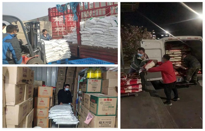 没有从天而降的英雄,只有挺身而出的盐业人。在这里公司负责人既是工作联络者也是服务志愿者,他们积极参与到志愿服务工作中,在与美特好负责人对接后,于4月14日晚7点30分,带领志愿者队伍准时到达美特好中鲁物流园区,开始商品装车向美特好各门店运输配送工作。最后一辆配送车完成配送任务已至4月15日凌晨。据统计,截至4月16日早8时,志愿者队伍已完成美特好十余家门店的配送任务,并承诺在完成每日晋盐配送供应的同时,加大运输力度,助力美特好各门店配送工作,保障省城及周边居民日常生活物资的正常供应。