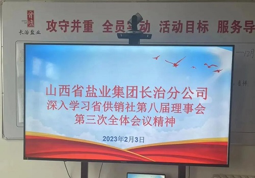 2月3日,长治盐业集体学习省社八届理事会第三次全体会议精神,进一步把握政策导向,明确目标任务。会议学习传达了省社党组书记、理事会主任高建军同志所作的工作报告。报告站位高、思路清、分析准、要求实,具有很强的思想性、针对性和指导性,为长治盐业开展好2023年工作,稳步推进长治盐业发展。