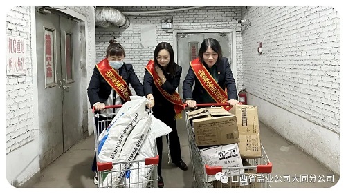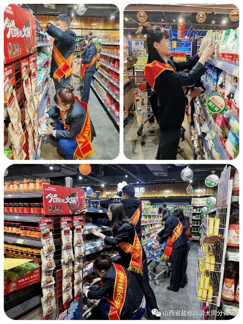 活动期间,志愿者们给晋盐货架补充上货,并且认真细致的摆放整齐。虽然大部分是女同志,但是她们都能扑下身子,来来回回多次从地下一层的库房拉货到二层。大家立足本职、踏实肯干,充分发挥着“螺丝钉”精神,体现了大同盐业人不畏困难、一心服务客户的工作作风。