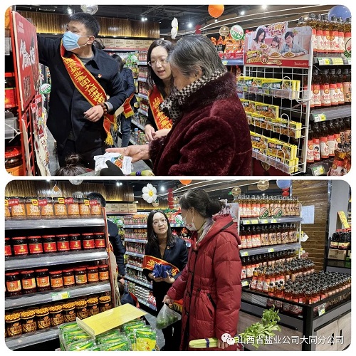 借此机会,大同盐业工作人员向过往顾客讲解了食盐专营政策和晋盐品牌的国企特性,同时讲解了提倡科学补碘和国家实行食盐加碘消除碘缺乏病的重要性,并且为顾客详细介绍了各种盐的特点、功效、作用,受到了大家的一致好评。