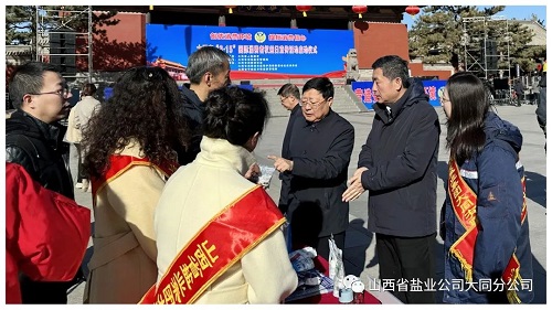 3月15日上午九点,山西省盐业集团大同有限责任公司参加了由大同市人民政府主办,大同市市场监督管理局承办的“3.15国际消费者权益日”暨消费维权年主题宣传活动启动仪式,深入宣传消费维权年主题,展示保护消费者合法权益工作新形象、新成效,助推放心消费环境建设,提振全年消费信心。今年的主题是“创优消费环境,提振消费信心”。