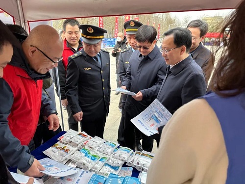 今年3·15活动现场,市、县盐业公司整体联动、开展宣传。我公司崔建斌经理带队联合高平市盐业公司,共同参与了由晋城市市场监督管理局在高平市党群服务广场组织开展的3·15晋城主会场宣传活动。晋城市张鹏飞副市长、市市场监督管理局朱慧杰局长亲临盐业展台了解食盐市场情况;另一组由田秋萍书记带队设立市区宣传点,其它县公司宣传活动同时进行。活动现场设立宣传咨询点和食盐展台,向过往的群众派发宣传资料、普及科学用盐知识;为大家讲解如何辨别真假食盐和假冒伪劣食盐,帮助群众提高安全用盐的意识。实用的科普内容吸引了众多人群前来咨询了解,活动现场气氛热烈。