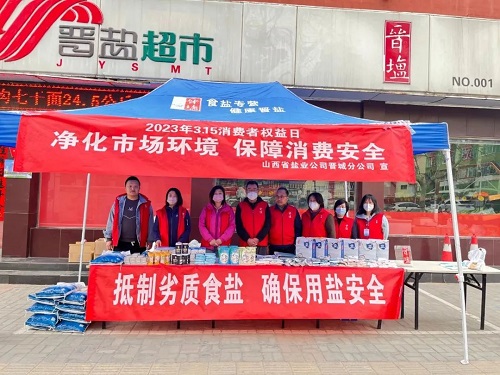 3月15日是国际消费者权益日,2023年的主题为创优消费环境、提振消费信心。作为食盐专营企业,晋城盐业积极履行国企社会责任,维护食盐消费环境,优化食盐品种结构,全天候保障辖区食盐市场质量安全和供应安全,为实现持久消除碘缺乏危害提供国企能量,满足群众科学用盐需求。