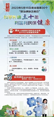 2023年5月15日是我国第30个“防治碘缺乏病日”,为深入践行主责主业,把行动落实到“抓市场、促销售、调结构、增效益”的工作目标上来,华体平台参加了由山西省卫健委疾控处、山西省疾控中心、山西省盐务综合服务中心等单位共同开展了以“科学补碘三十年、利国利民保健康”为主题的5·15宣传活动。