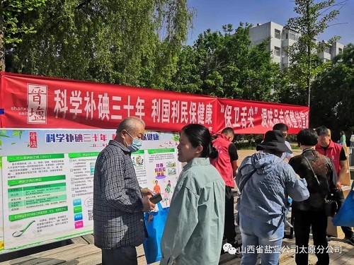 为让广大人民群众充分认识碘缺乏病的危害,深刻理解科学补碘、健康用盐的重要意义。太原盐业分公司配合太原市卫健委、太原市疾控中心、太原市场监督管理局、太原市教育局、山西省营养学会、山医大二院、清徐县供销社、清徐县盐业公司等部门在小店区、杏花岭区、尖草坪区、万柏林区以及清徐县5个主(分)会场,分别开展了声势浩大,形式新颖的“防治碘缺乏病日”主题宣传活动。