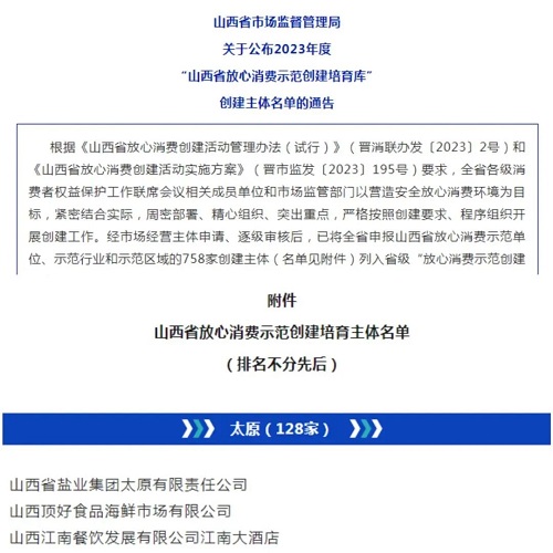 被评为“山西省放心消费示范创建单位”,对我们来说既是荣誉也是责任。我们将以此为契机,进一步强化内部管理,提升服务质量,为消费者提供更加放心、满意的消费体验。同时,我们也期待与社会各界携手合作,共同推动山西盐业的健康发展。
