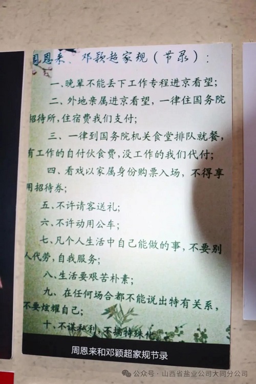 在光耀青史展厅,讲解员由黑及白,以祖籍大同的栗毓美为代表,讲述了从古代山西廉吏到老一辈革命家再到当代典范。敢担当、善作为、创实绩的清廉官员事迹,激浊扬清,鼓舞着大同盐业的广大党员同志们,给党员同志们以警示、启迪和展望。
