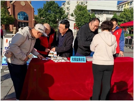 活动现场,工作人员通过悬挂宣传条幅、发放“晋盐”宣传彩页、“晋盐”产品展示、现场答疑互动等形式,向过往群众普及食盐安全、碘缺乏病危害,向特殊人群讲解如何选购对口盐品,介绍“晋盐”碘含量精准投放的亮点。在真假食盐展区,工作人员以现场摆放的仿冒晋盐和真品晋盐做仔细鉴别,提醒居民通过图案、标识、文字、色彩对比等,拒绝购买仿冒劣质盐品。