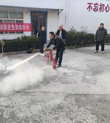 消防安全现场演练现场,通过模拟扑救初期火灾的方式,促使全体人员进一步熟悉和掌握灭火器的使用方法。