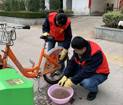 临汾分公司党支部组织全体职工参加了协会举办的“学雷锋月”志愿服务活动。志愿者们统一着装、精神振奋,展示了盐业职工的良好形象、靓丽风采和精神面貌。志愿者们仔细地擦拭着“共享单车”,以认真负责和辛勤劳动换来了每辆单车的一尘不染,让市民们能够放心骑行、安心共享,用自己的实际行动为城市的亮化、美化、环保做了一点努力,为雷锋精神的赓续传承和发扬光大尽了一点心意,为弘扬文明新风、社会公德、提升志愿服务添了一点动力。